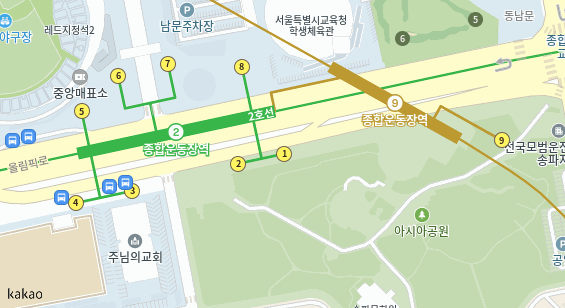 위치: 서울지하철 2호선 종합운동장역 1번출구 앞